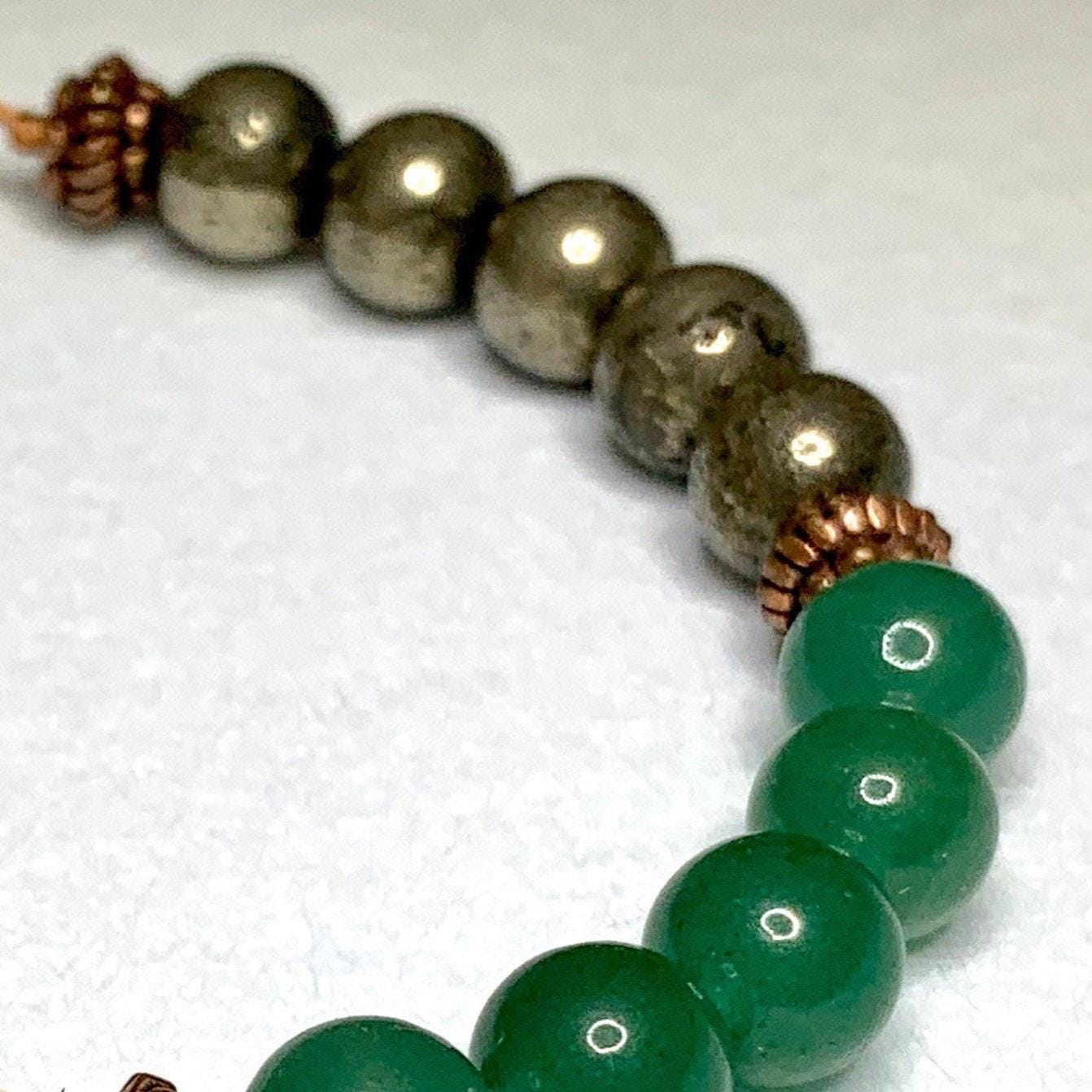 Your will receive 1 (ONE) Citrine Pyrite Jade and Green Aventurine 8mm Beaded Bracelet with Copper Spacers