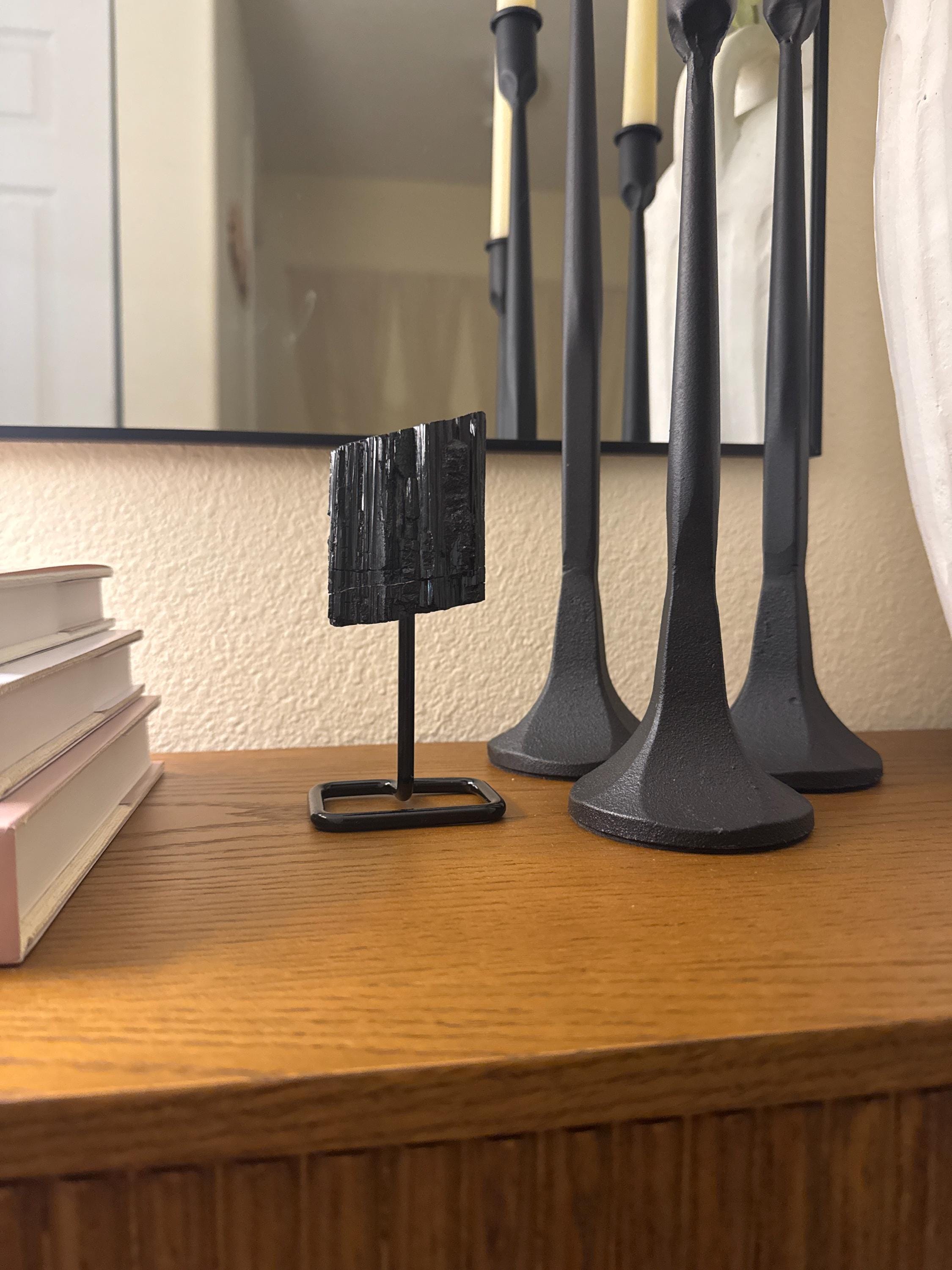Raw Black Tourmaline on a Stand: the first of its kind I own! I like that It keeps me company! Thank you, Earths Minerals, Inc. I will shop again!